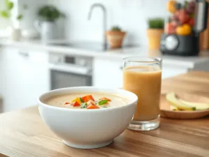- Śniadanie: owsianka na napoju sojowym z odrobiną orzechów i jogurtem naturalnym,